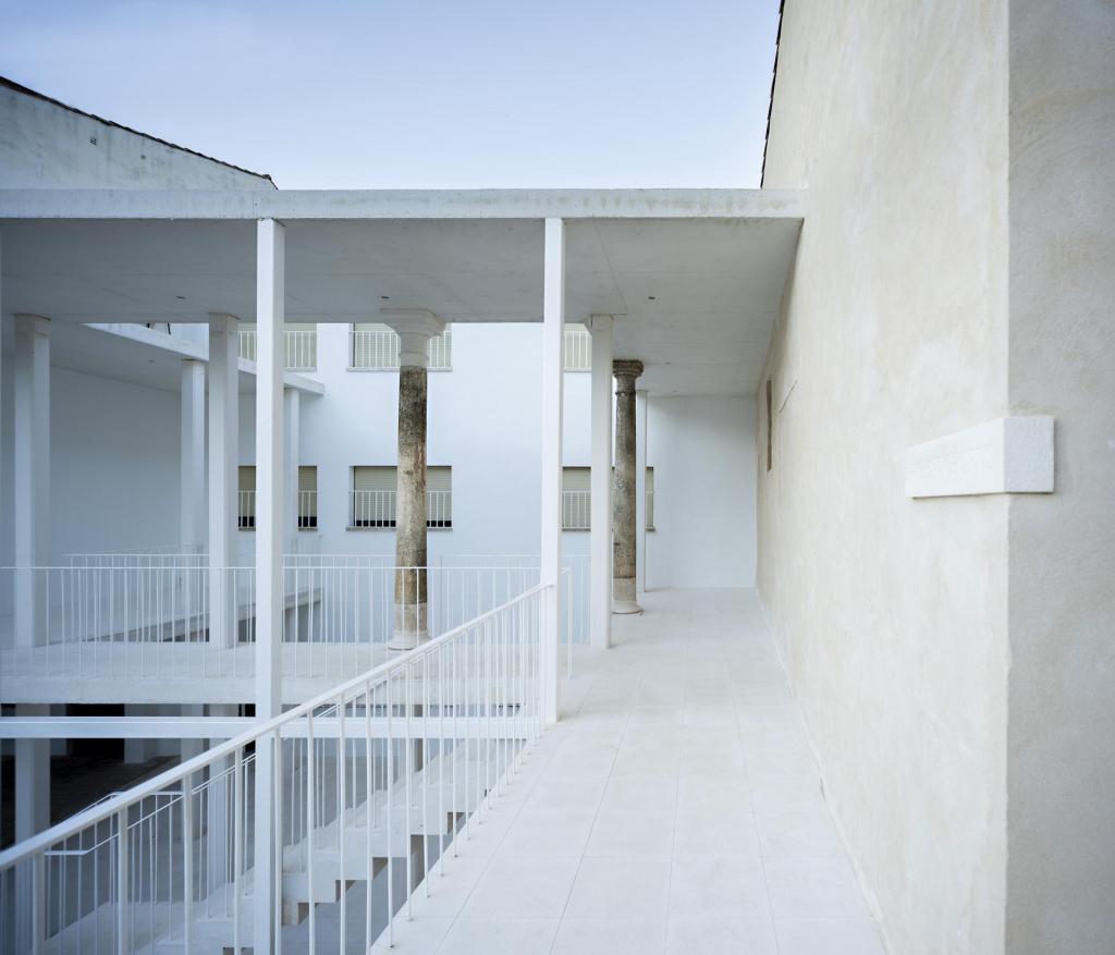 La saturazione abitativa aveva cancellato la morfologia tipologica del complesso. La sfida non era solo rimuovere le superfetazioni, ma ritrovare l’impronta (“huella”) dell’impianto originale per ristabilire le gerarchie perse. Il progetto è stato concepito come un “progetto di assenze”: dato che la quasi totalità dei corpi di fabbrica (dormitori, refettorio) era andata perduta, l’architettura doveva rendere manifesti questi vuoti piuttosto che colmarli arbitrariamente.
