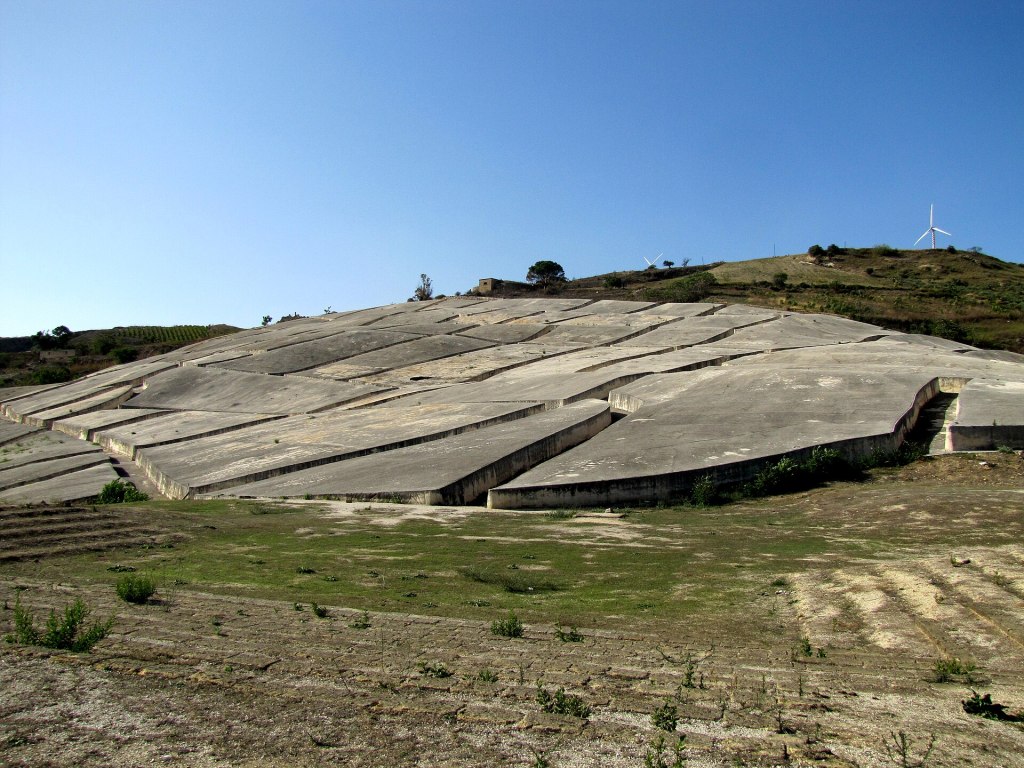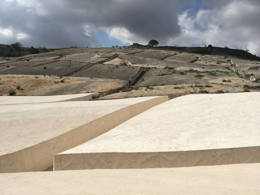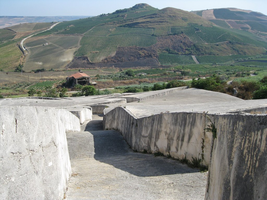 Sopra questa base fu colato il calcestruzzo bianco. I blocchi misurano tra i 10 e i 20 metri di lato, con un’altezza di circa 1,60 metri. Questa misura fu pensata per avvolgere il visitatore senza precludere lo sguardo sulla vallata circostante. Le fenditure, larghe tra i 2 e i 3 metri, ricalcano esattamente gli antichi vicoli. Camminare al loro interno significa, letteralmente, ripercorrere la mappa di una città fantasma.